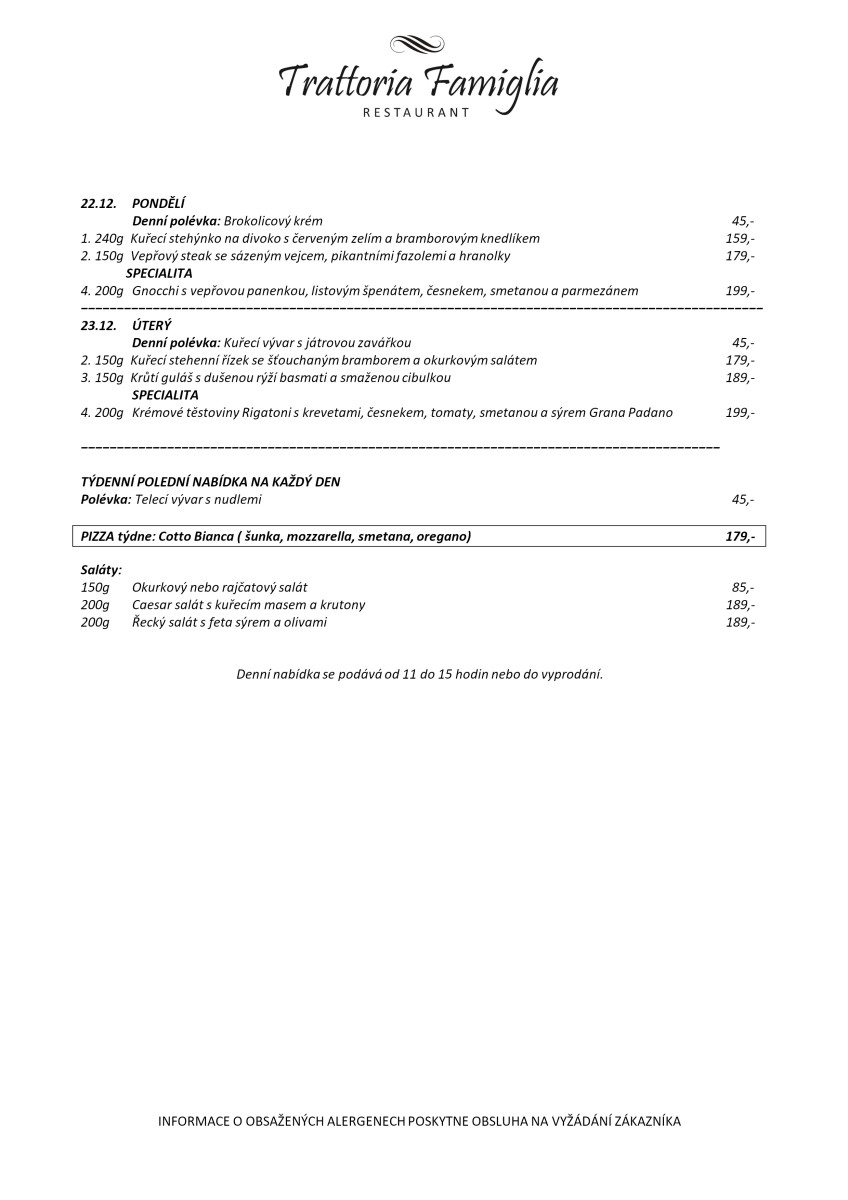 Chcete, abychom Vám zasílali týdenní polední menu do Vašeho emailu?